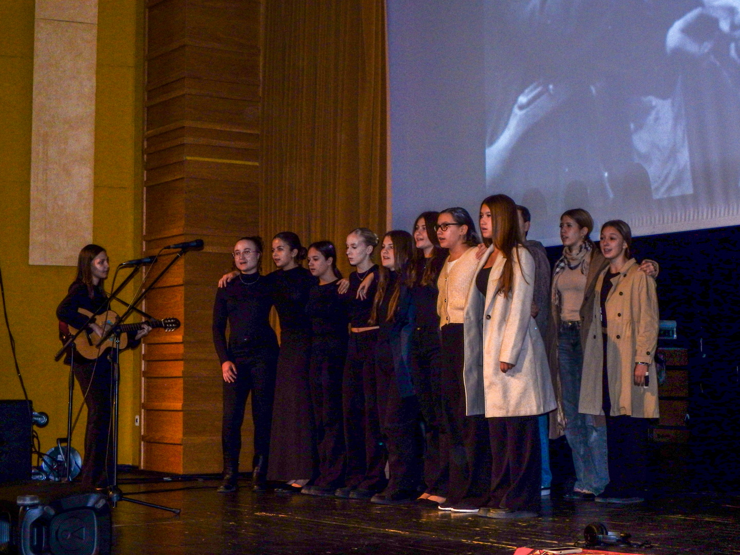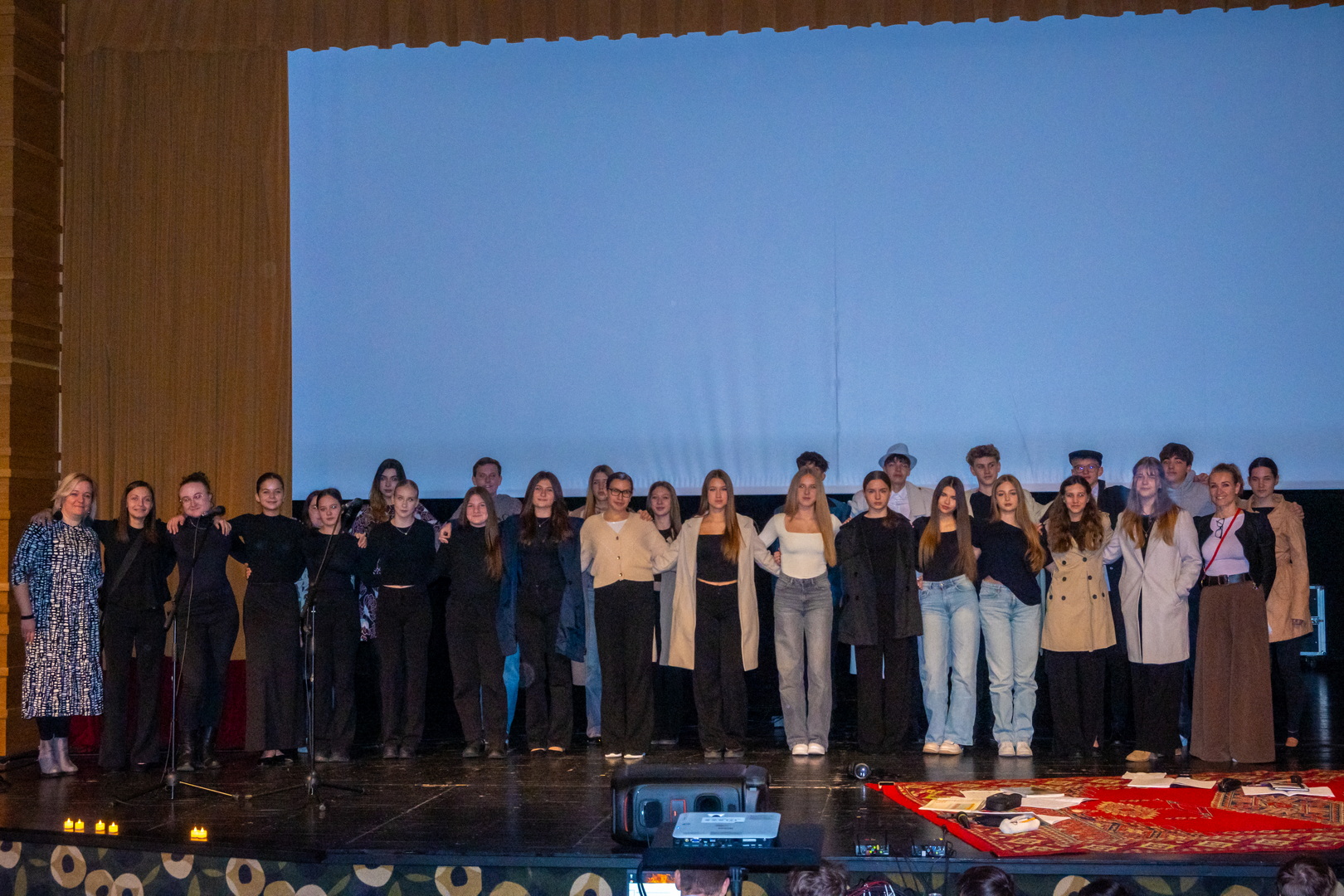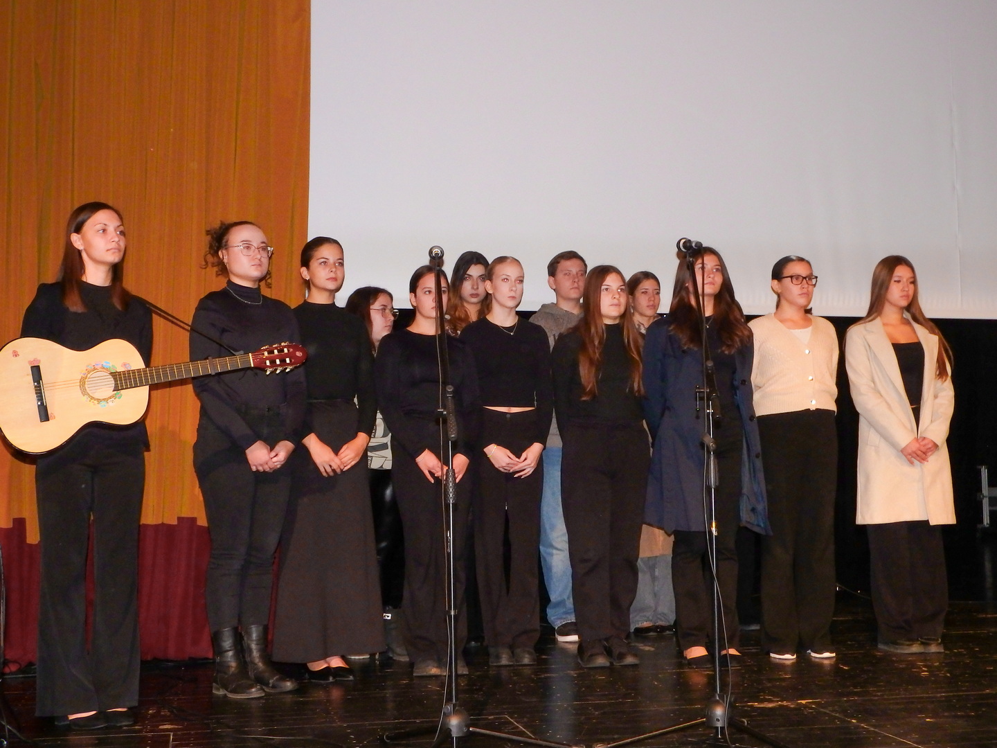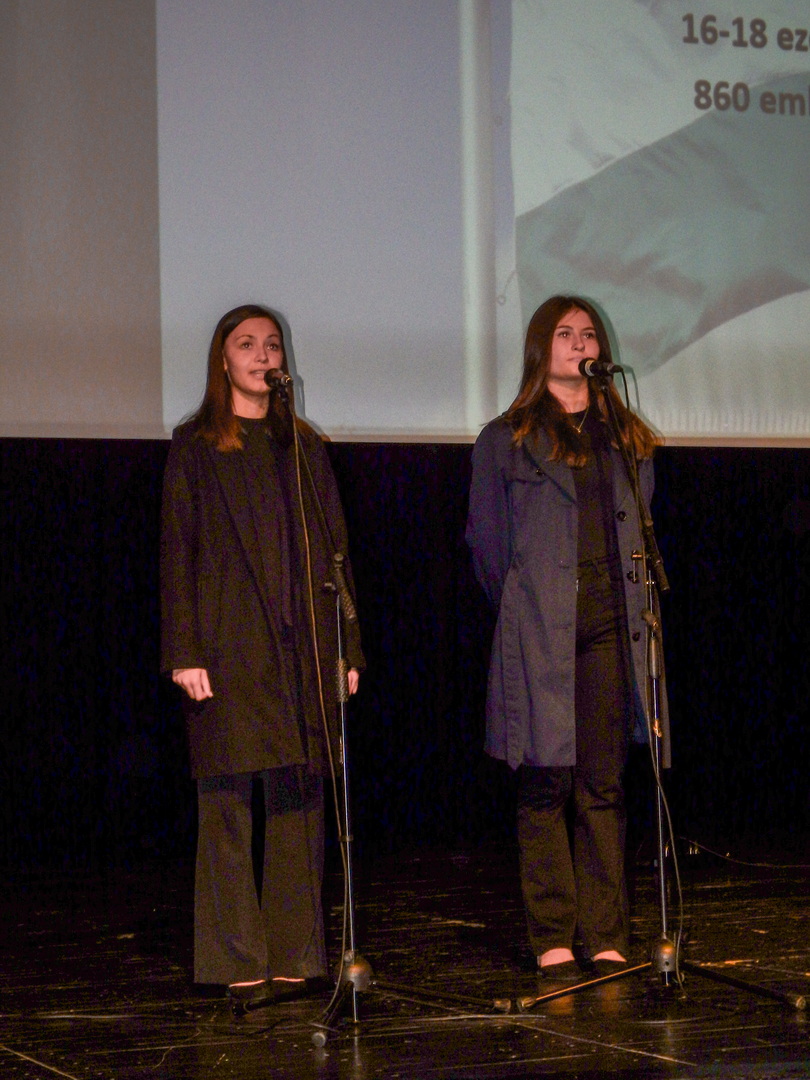 Méltóságteljes, sokoldalú, sok üzenetet hordozó megemlékezést tartott iskolánk az 1956-os forradalom és szabadságharc 69. évfordulója előtt tisztelegve. A Tinódi Ház nagytermét zsúfolásig megtöltő közönség számára a nagyszerű eredeti felvételek és filmrészletek hatására magyarázatot nyertek a forradalom kitöréséhez vezető okok, megelevenedtek a hősiesség, az áldozatvállalás eseményei, s azok aktív résztvevői. Hálás köszönetünket fejezzük ki a műsor megálmodóinak, Hilbert Henriett és Halmosi Anett tanárnőknek a műsor megszervezéséért. Köszönjük Dr.Csernák-Szuhányszki Debóra tanárnőnek a sok segítséget a megemlékezés összeállításában, valamint Bazsó Boglárka tanárnőnek, hogy segített a zenés produkció betanításában. Köszönjük a 9. évfolyam tanulóinak a részvételt. A műsor szereplői igazgatói dicséretben részesülnek: a 9.a osztályból: Frank Alexandra, Sámoly Panna, a 9.b osztályból: Bakó Márk, Fábián Kíra, Gelencsér Angéla, Glaub Hanna, Györgydeák Emma, Marosi Nimród, Papp Jázmin, Szabó Emília, Szabotin Soma, Szabó Albert Zétény, Szalai Csongor, Zrínyi Lorina, a 9.n osztályból: Bakó Petra, Börcsök Annabella, Darabos Rebeka, Kalász Laura, Kovács Anna, Marton Hanna, Molnár Kincső, Palánki Sára, Právics Réka, Szabó Panna, Takács Bence, Zelend Vivien. A rendezvény hangosítói a következő diákok voltak: a 9.n osztályból: Brunner Andor, Kovács Ákos, Lakatos Lőrinc, Péter Zsombor, a 12.a osztályból: Gerber Dániel, Szigeti Kornél.