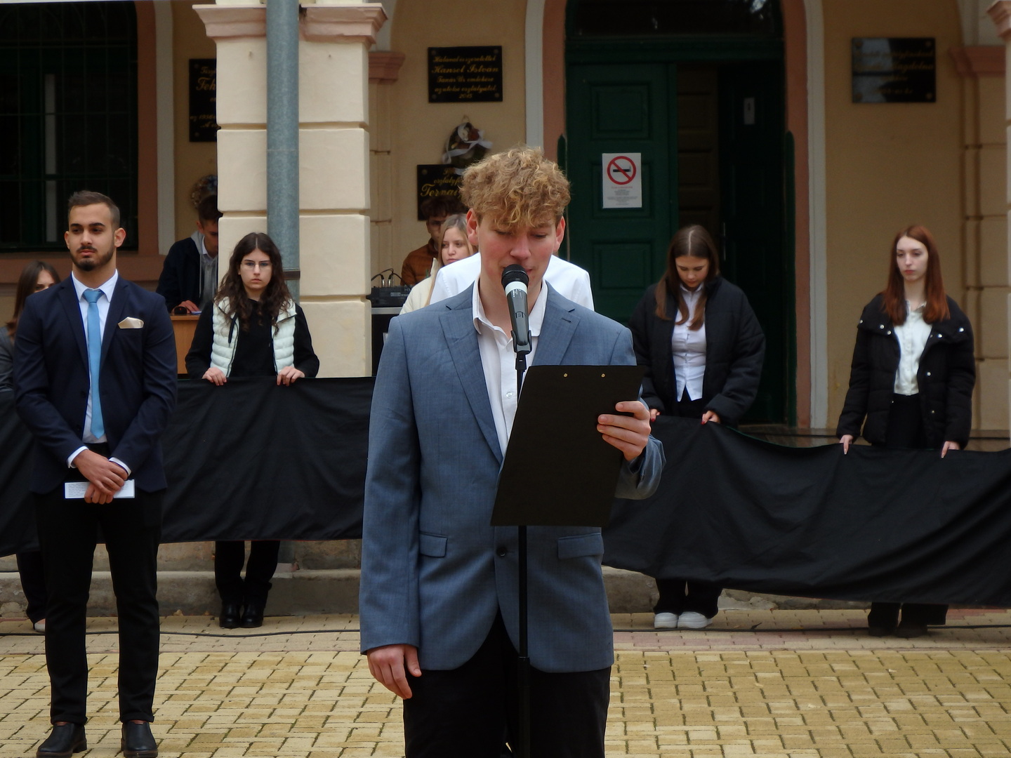 Tanulóink produkciójának értékét és jelentőségét növeli, hogy műsorukat nem csupán a dombóvári gimnázium közösségének mutatták be, hanem Dombóvár város önkormányzatának felkérése alapján az egyúttal városi megemlékezés is volt nemzeti gyásznapunkon.