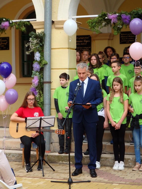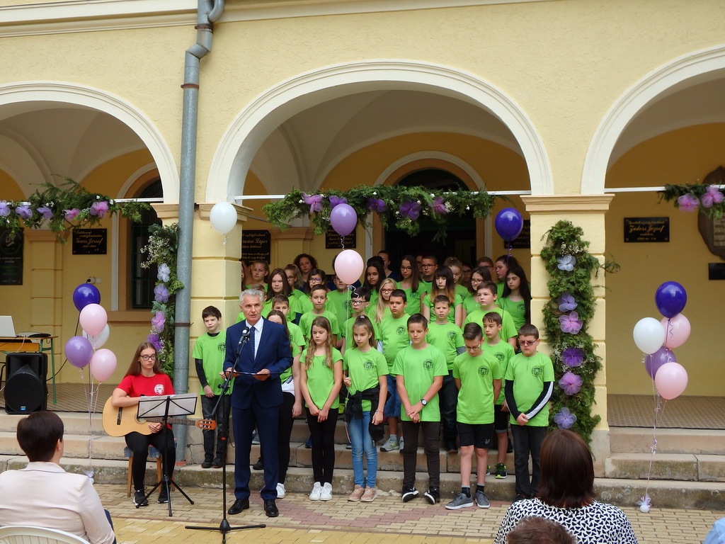Az ünnepi program zárásaként a gimnázium könyvtárában Dr. Szenyéri Zoltán nyugállományba vonulása alkalmából díszoklevelet nyújtott át Kőváriné Misky Éva Zsuzsanna tanárnőnek. Köszöntötte azokat a meghívott díszvendégeket, akik kiemelt patrónusként csatlakoztak az intézmény fejlesztésének ügyéhez. A jelenlévő jeles támogatók közül díszoklevél adományozásával az intézmény tiszteletbeli tagjává fogadták Modric Editet, Éva Árpádot és Parrag Gyulát.
