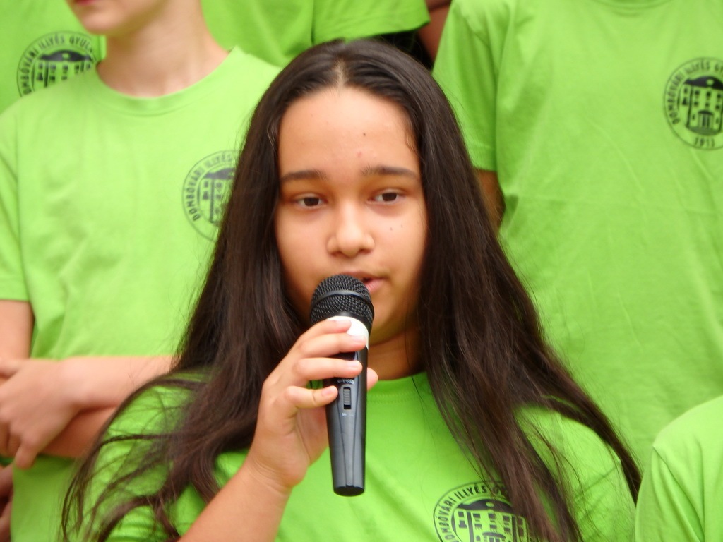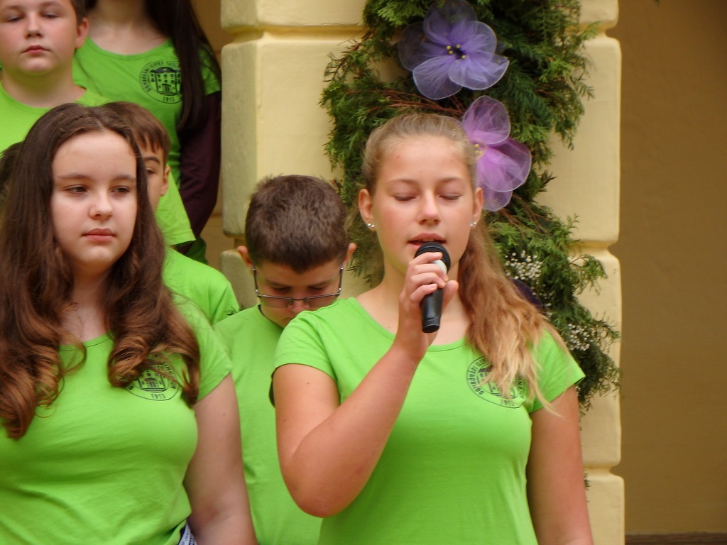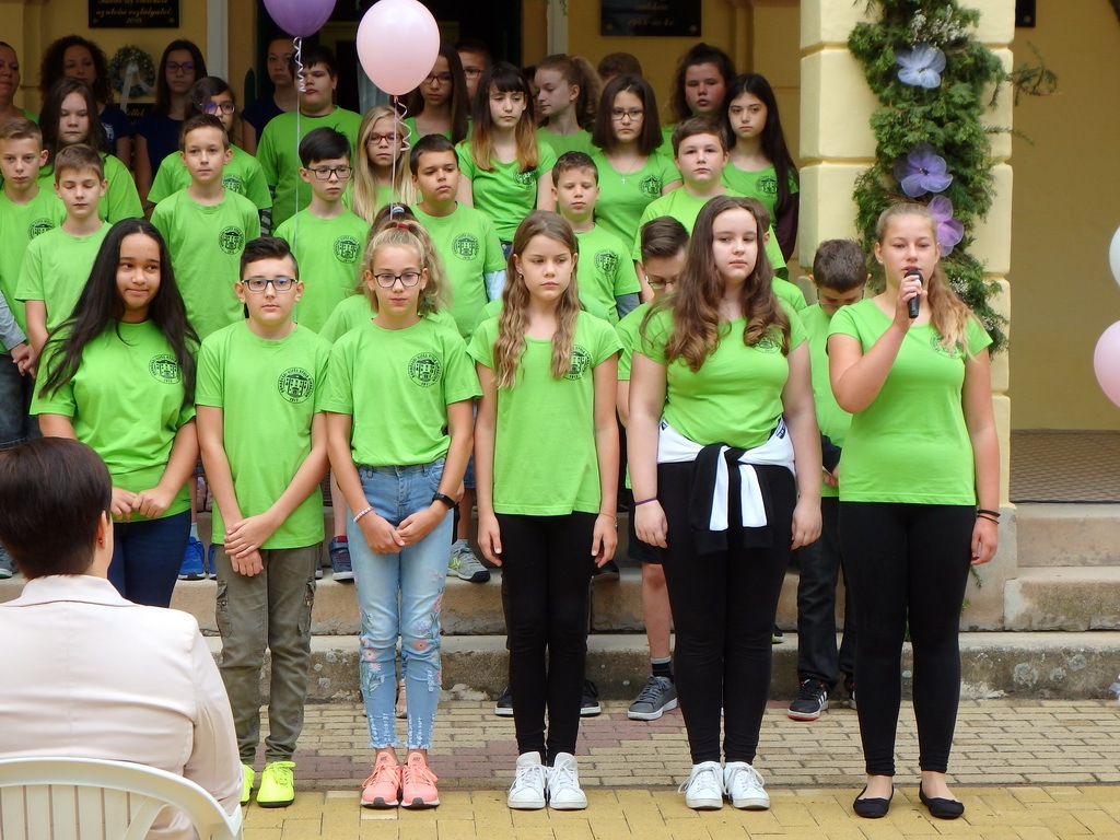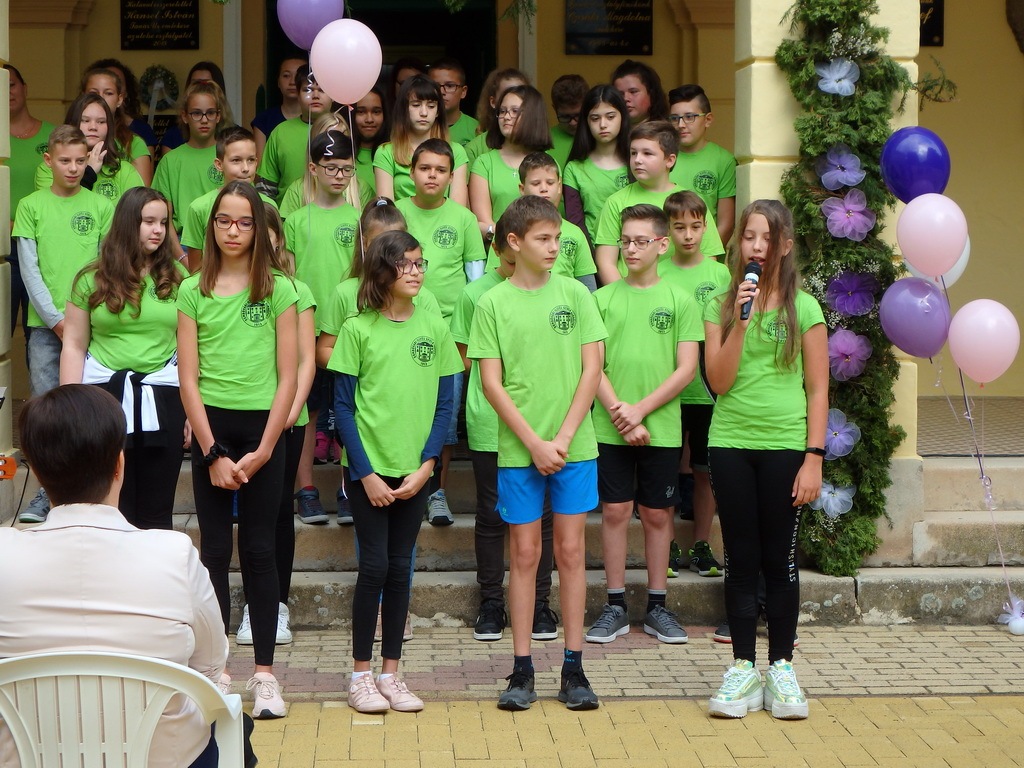 Az évnyitó második részében a 6. n osztályos diákok, osztályfőnökük, Kazinczi Katalin segítségével köszöntötték az új tanévet. A vidám műsorban a tavalyi digitális tanév furcsaságait, a mai kisdiákok gondolatait ismerhettük meg. A prózai és versrészletek mellett nem hiányozhatott a közös éneklés sem, amelyben Kerekesné Bauer Márta tanárnő vezetésével segítettek az iskolai kórus tagjai. A kicsikkel együtt énekelték a Republic együttes vidám, az évnyitó hangulatához teljesen illeszkedő dalát. A produkcióban Máté Szelina és Bayerle Luca 9. n, Till Bernadett, Szenyéri Gréta, Takács Lora 10. b osztályos tanulók vettek részt.