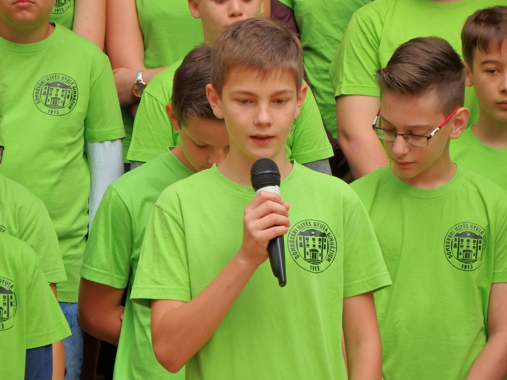 A járványügyi helyzetre való tekintettel csak a meghívott díszvendégek hallhatták a helyszínen, a dombóvári gimnázium udvarán 2020. szeptember 1-jén a tanévnyitó alkalmából Dr. Szenyéri Zoltán intézményvezető köszöntőjét és a 6. n osztályosok színpompás, vidám műsorát.