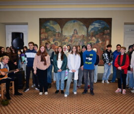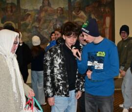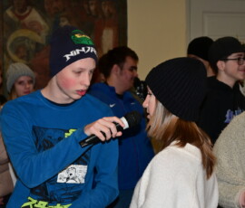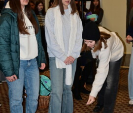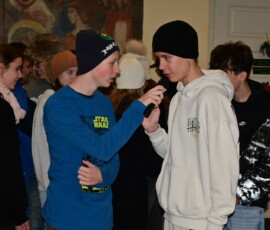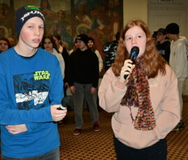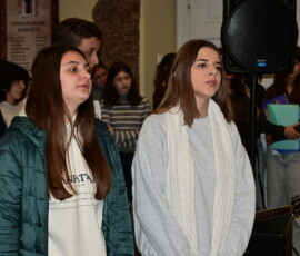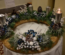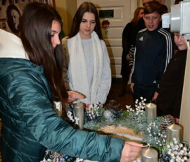 December elsején nyolcadikos diákjaink műsorával vette kezdetét iskolánkban az adventi várakozás. A diákok egy iskolai hétköznapot idéző jelenettel világítottak rá az ünnep, az elcsendesedés jelentőségére, melyet az osztály közös éneke követett Soós Gyopár tanárnő gitárkíséretével. Hálásan köszönjük! A produkciót követően került meggyújtásra az első gyertya az iskolai adventi koszorún, melyet Gyeneiné Rada Beáta tanárnő készített. Iskolánk épületében varázslatos ünnepi hangulat fogadja az ide betérőket. Hálás köszönet érte a díszítést készítő Gyeneiné Rada Beáta tanárnőnek és a neki segédkező dolgozóknak, diákoknak!