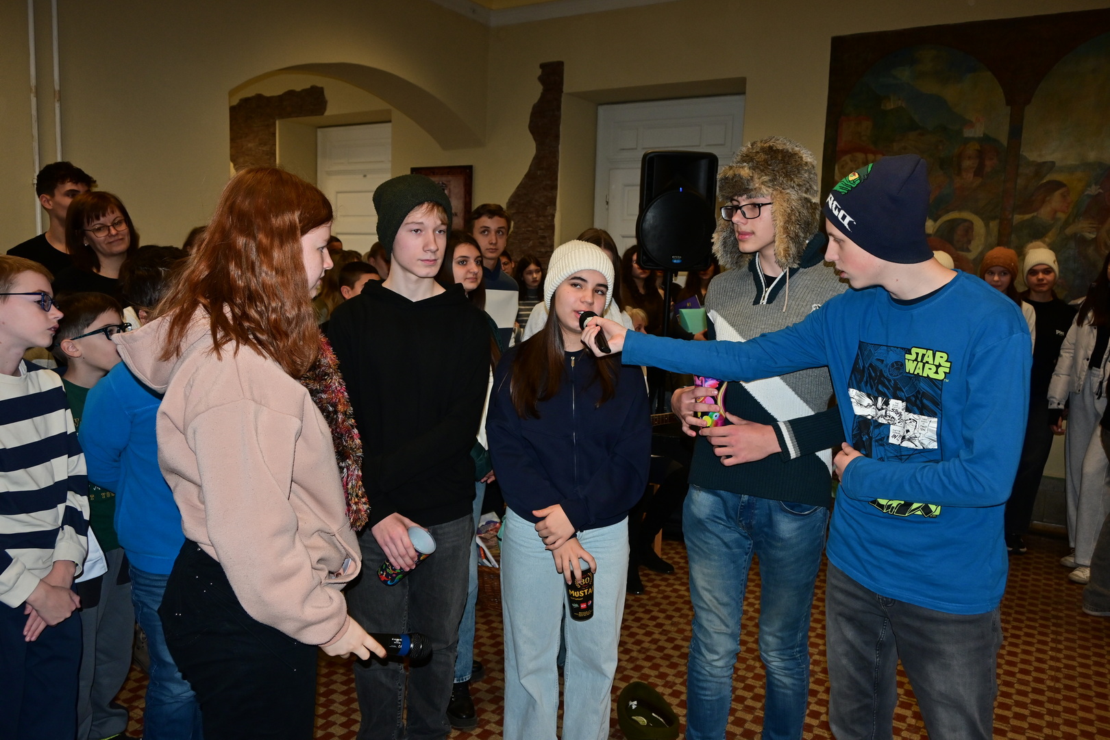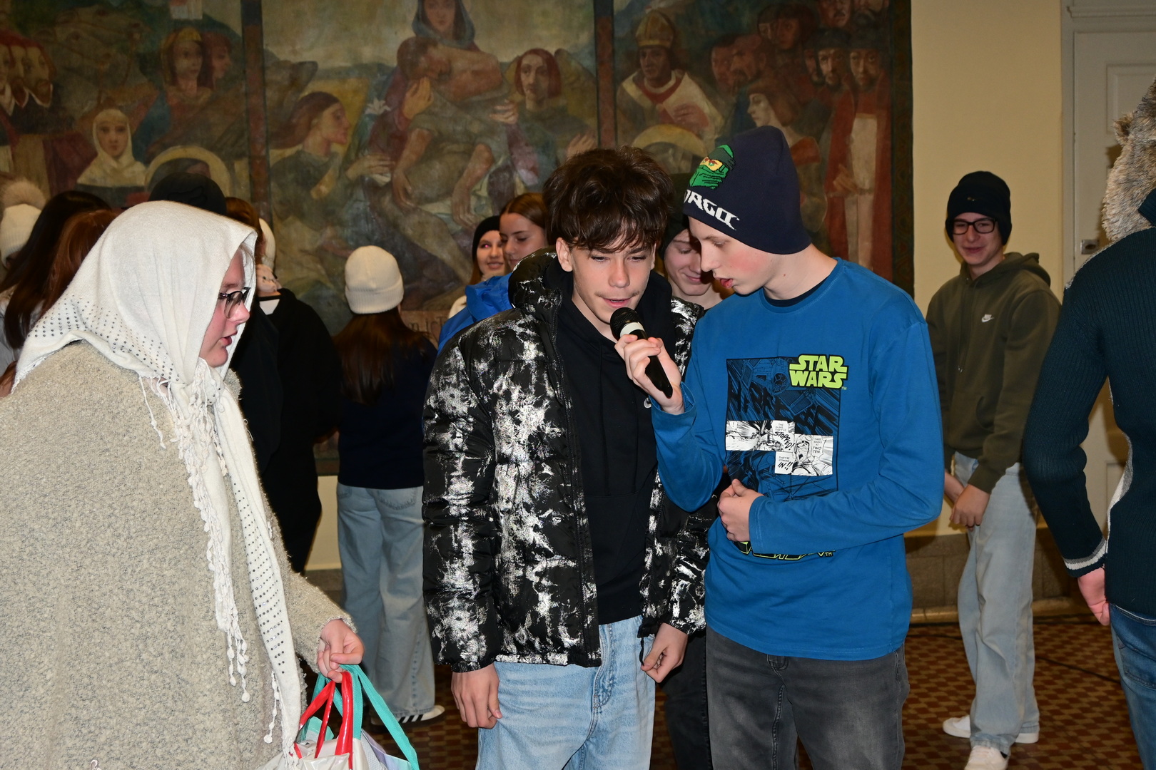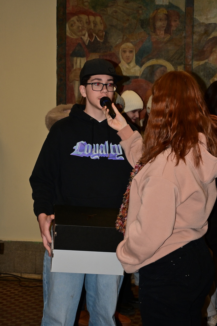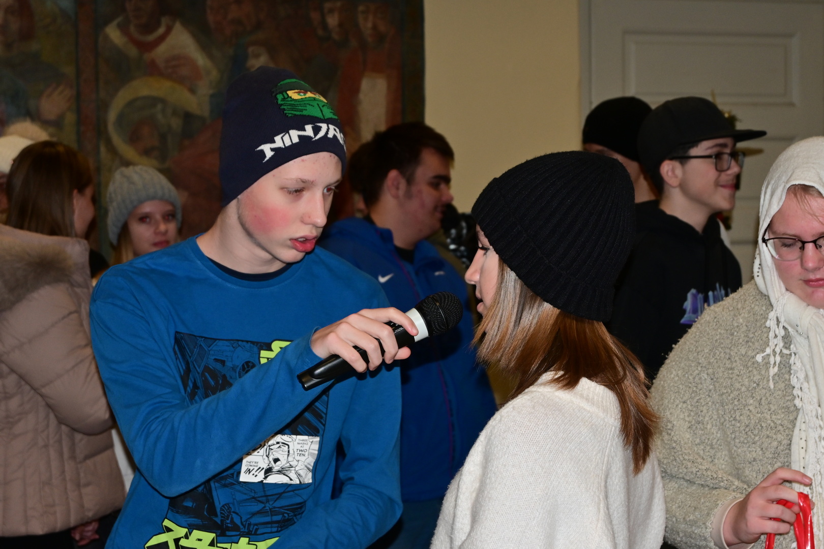 December elsején nyolcadikos diákjaink műsorával vette kezdetét iskolánkban az adventi várakozás. A diákok egy iskolai hétköznapot idéző jelenettel világítottak rá az ünnep, az elcsendesedés jelentőségére, melyet az osztály közös éneke követett Soós Gyopár tanárnő gitárkíséretével. Hálásan köszönjük! A produkciót követően került meggyújtásra az első gyertya az iskolai adventi koszorún, melyet Gyeneiné Rada Beáta tanárnő készített. Iskolánk épületében varázslatos ünnepi hangulat fogadja az ide betérőket. Hálás köszönet érte a díszítést készítő Gyeneiné Rada Beáta tanárnőnek és a neki segédkező dolgozóknak, diákoknak!