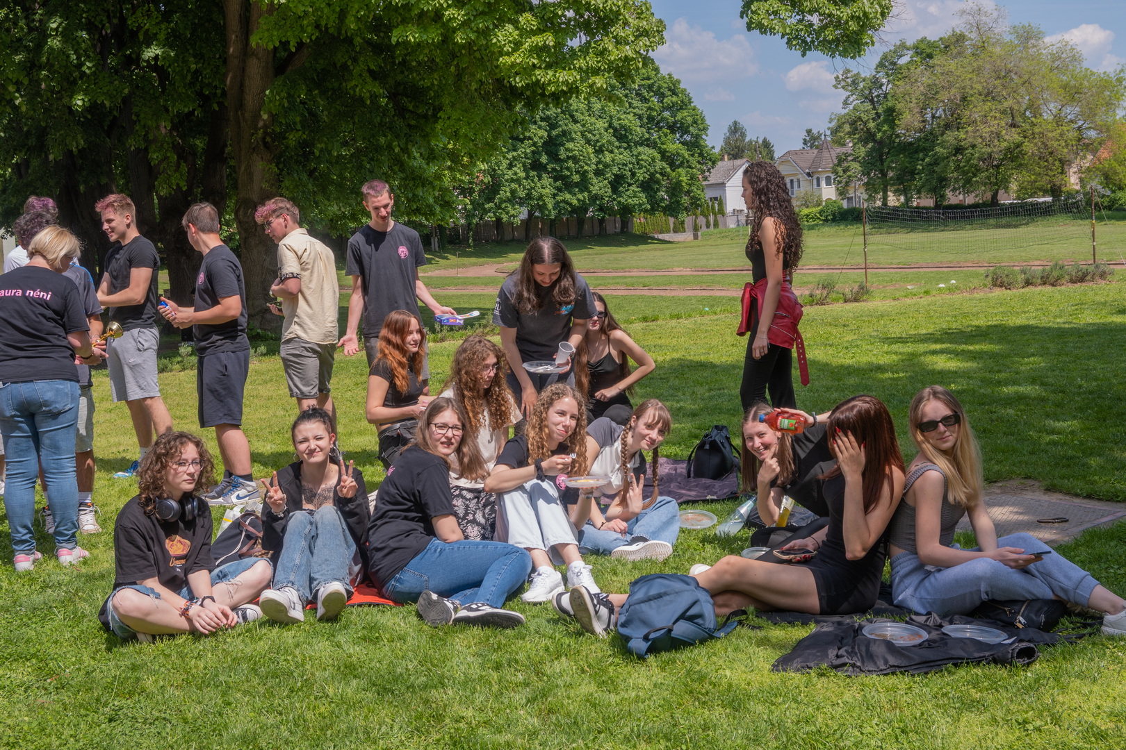 Április 30-án a DÖK szervezésében Diáknapot tartottunk a gimiben. Diákigazgatónk, Babodi Máté 12.a osztályos tanuló, miután ünnepélyesen megnyitotta az eseményt, átadta az „Év Tanára” díjakat. A legmegértőbb tanár díját Horváth Györgyi nyerte, a legbarátságosabbnak és a legkreatívabban tanítónak Pap Gabriellát ítélték a diákok, a legsegítőkészebbnek Erdélyi Tamást választották, a legenergikusabb és leglelkesebb cím Tóth Sándorhoz került. Majd egy kutyás bemutatót tekinthetett meg a diáksereg, amelyet Somogyi Vivien 10.b osztályos tanuló és Lucky névre hallgató border collie kutyusa tartott. Ezt követően beindult a diáknapi fergeteg. Volt itt nyomógombos vetélkedő, LoL bajnokság, mozi és játéktermek, jósda, foci- és röpibajnokságok és sütivásár a Jumpers Kötélugró Sportegyesület jóvoltából. A diáknapot megelőző 2 hétben kutyatáp gyűjtést szerveztünk a Help Egyesület számára. Iskolánk 5.n osztálya gyűjtötte a legtöbb kutyaeledelt, ők ezért egy kis különdíjban is részesültek. A környezettudatosság jegyében ruha- és játék börzét is tartottunk a diáknapon, melynek keretében diákjainknak lehetőségük volt behozni már nem használt, de jó állapotú ruháikat, játékaikat, melyekből bárki kedvére válogathatott, a megmaradt dolgokat pedig jótékony célra ajánlja fel iskolánk. A diáknap egyben a 12. évfolyamosok utolsó “tanítási” napja is volt, így ők ezt az eseményt összekötötték a végzősök hagyományos zöld napjával. A napot az osztályok közös főzése koronázta meg. Készült többek között lecsó, babgulyás, paprikás krumpli, pörkölt, gofri, lángos, grillen sült csirke, minifánk és még sorolhatnánk. A tavaszi focibajnokság győztese a kisgimnazisták közt a 8.n osztály csapata lett, a nagyok versenyében a 11.b együttese győzedelmeskedett. A röplabda bajnokságot a 8.n csapata nyerte. A nyomógombos vetélkedőn az 5-6. osztályosok közt az első helyet Csizek Zalán, Szentes Ákos és Varsányi Ádám 6.n osztályos tanulók szerezték meg. A 7-8. osztály kategóriában Horváth Gergő, Takács Bence és Tőzsér Levente győzedelmeskedett a 8.n osztályból. A 9-12. évfolyamosok közt Somogyi Nóra Eszter, Tóth Tamara és Szekeres Dominika 10.b osztályos diákok nyertek. Az időjárás is nekünk kedvezett, hiszen ragyogó napsütésben tölthettük el ezt a napot együtt.