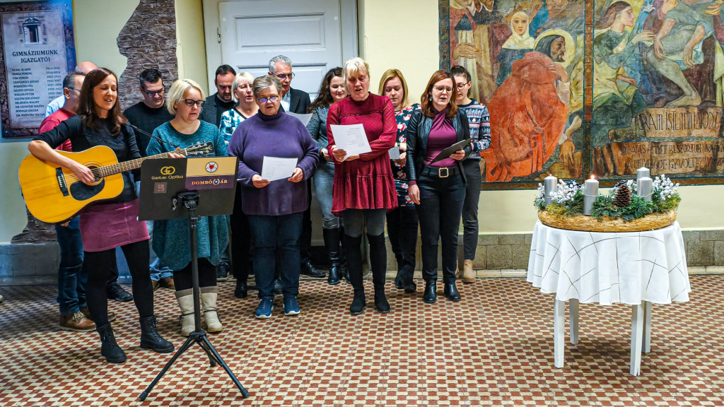 Az örömöt jelképező adventi vasárnapot követően iskolánkban is fellobbant a harmadik láng. Meggyújtását Molnár Kincső (9.n) Lakatos Lőrinc (9.n) zongorajátékával kísért szavalata tette igazán bensőségessé. Zárásként a Bagossy Brothers Company karácsonyi gondolatait közvetítette a tanári kórus Juhász Rita igazgatóhelyettes gitárkíséretével. Hálásan köszönjük!