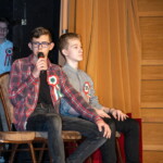 Az 1848-49-es forradalom és szabadságharc eseményeire és fontos szereplőire egy rendkívül modern feldolgozású, változatos és látványos műsor keretében emlékeztünk meg a 7.n osztályos diákok előadásában. A Soós Gyopár tanárnő által színpadra álmodott produkcióban 1848 értékeit, jelentőségét és a mának szóló üzeneteit egy történelem órai osztály jelenetből kibontakoztatva fogalmazták meg a szereplők az akkori és a mai versek, klasszikus és modern zenei stílusú dalok, elképzelt dialógusok, beszédek, Instagram profilok és bejegyzések változatos formai és tartalmi lehetőségeit kihasználva. Az előadásban az osztály valamennyi tanulója részt vett, és mindannyian magas szintű előadói képességükről tettek tanúbizonyságot. A hangosításban a 11.a osztályból Gerber Dániel, Tóth Ádám, Kovács Máté és Szigeti Kornél segédkezett. Szívből gratulálunk a produkció valamennyi közreműködőjének! A diákok igazgatói dicséretben részesülnek.