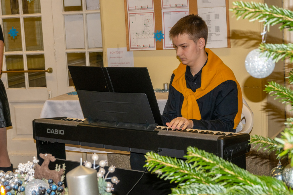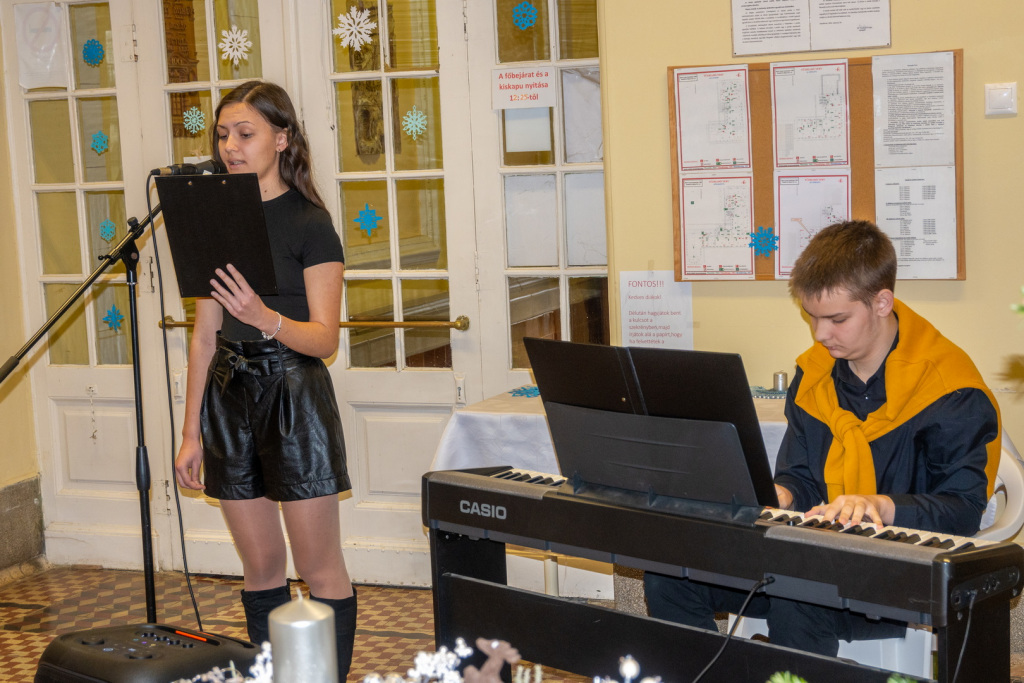 December 8-án advent második vasárnapja alkalmából Trapp Dorián (11.a) és Gelencsér Angéla (9.b) közös produkciója varázsolta meghittebbé a közös iskolai gyertyagyújtást a gimnázium közössége számára. Dorián karácsonyi dalokat játszott zongorán, Angi Pilinszky János az adventi várakozás misztikumának magyarázatot adó gondolatait tolmácsolta, mely szerint „advent a várakozás megszentelése. Rokona annak a gyönyörű gondolatnak, hogy meg kell tanulnunk vágyakozni az után, ami a miénk.”. Szívből köszönjük nekik!