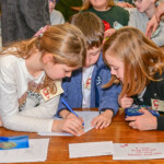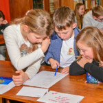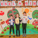 Január 17-én immár harmadik alkalommal hívtuk játékos népmese vetélkedőre az általános iskolák harmadikos és negyedik osztályos kisdiákjait. Nagy örömünkre idén már tizenegy csapat mérettette össze tudását. A Mesél a Gimi elnevezésű vetélkedőn egy mesebirodalomban kalandozhattak a versenyzők. Mind a harmadikos, mind a negyedikes csapatoknak 7-7 furfangos próbatételt kellett teljesíteniük annak érdekében, hogy Eszes Jankónak segítsenek megtalálni a csodaszép királylányt. A megfejtéshez vezető kalandos úton a csapatok nagy segítségére volt az összedolgozás, a találékonyság, az olvasottság, a figyelem, a talpraesettség, az ügyesség, a gyorsaság. Közben az erszényük megtelt csillogó aranytallérokkal. A hét próba teljesítését követően az előzetesen megtekintett Kőleves című mesére vonatkozó kérdésekre kellett közösen összedolgozva a helyes válaszokat megtalálniuk. A vetélkedő végeztével valamennyien mesehősökké váltak, akik bízunk benne, hogy batyujukban sok szép élménnyel távoztak tőlünk! Az elképesztően ügyes és lelkes kisdiákok rendkívül kiélezett versenye a következő eredménnyel zárult: