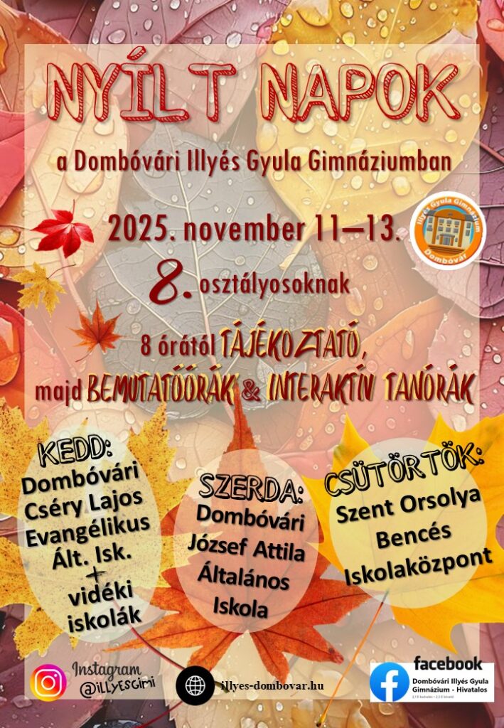Nagy szeretettel várjuk a Nyolcadikosokat és Szüleiket nyílt napjainkon! Kérjük, hogy az alábbi linkekre kattintva regisztráljanak az eseményre: