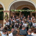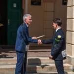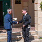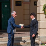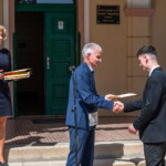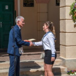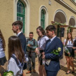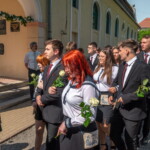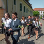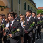Ragyogó, júliust idéző napsütésben, fantasztikusan feldíszített iskolaépülettől búcsúztak el a Dombóvári Illyés Gyula Gimnázium tanulói a 2025. május 3-án megtartott ballagási ünnepségükön. Rendezvényünket megtisztelte Pintér Szilárd polgármester úr, Nagy Roland alpolgármester úr, Csike Tamás tankerületi igazgató úr, Kökönyei Hedvig szakmai vezető asszony, valamint városunk képviselő testületének számos tagja, a dombóvári középiskolák vezetői. Dr. Szenyéri Zoltán igazgató úr ünnepi beszédében méltatta a 12. évfolyam eddigi eredményeit, kiemelte a szalagavató táncok koreográfiájának magas színvonalát, s a diákigazgató-választás kampányában tapasztalt hatalmas összefogást az osztályközösségek részéről. A végzősök kiváló szorgalmát, a tanulás iránti alázatát bizonyítja, hogy az idén hét tanuló kapta meg a legjobbaknak járó Illyés Gyula-díjat, s megosztva ítélték oda a legjobb leánytanulónak járó Bárány Vera-díjat és a legjobb nyelvi eredményeket elért diákoknak járó Dr. Buda Imre-díjat is. A 11. évfolyam műsorában közreműködött Braun Ádám 11.b, Ujvári Pálma 11. a és Bánfai Balázs 11. n osztályos tanuló. A búcsúzó évfolyam nevében a 12. a osztályból Eperjesi Zalán, a 12. b osztályból Berta Noémi, a 12. n osztályból pedig Bogyay Regina köszönt el diáktársaiktól, s tanáraiktól. Dr. Szenyéri Zoltán igazgató úr meleg szavakkal köszöntötte az idén nyugállományba vonuló Király Gyula Lászlóné tanárnőt, s átadta neki azt a díszoklevelet, amellyel az intézmény örökös tagjai sorába fogadta. Szintén díszoklevelet vehetett át több évtizedes kiemelkedő támogató tevékenységéért Erky-Nagy Tibor tipográfus és Sinyi Zsolt operatőr, az iskola öregdiákjai. Igazgató úr hálás gondolatokkal köszönte meg beszédében a végzősök osztályfőnökeinek munkáját és ajándékot nyújtott át Dicsőné Kohlmann Csillának, Krommer Anitának és Kovács Péternek. Az óriási vendégsereg, az iskola közössége nevében hálásan köszönjük mindenkinek, aki közreműködött a díszítésben, a rendezvény megvalósításában. Külön köszönjük a 11. évfolyam osztályfőnökeinek, Dr. Csernák-Szuhánszki Debórának, Dr. Markóné Szabó Laurának és Tóth Sándornak a rendezvény megszervezését. Köszönetet mondunk öregdiákunknak, Pónya Bencének, aki a hangosítást felügyelte. Hálásak vagyunk a technikai feltételek biztosításáért Gerber Dánielnek és Tóth Ádámnak a 11. n osztályból. A rendezvény hivatalos fotósa Dancs Álmos Levente volt.