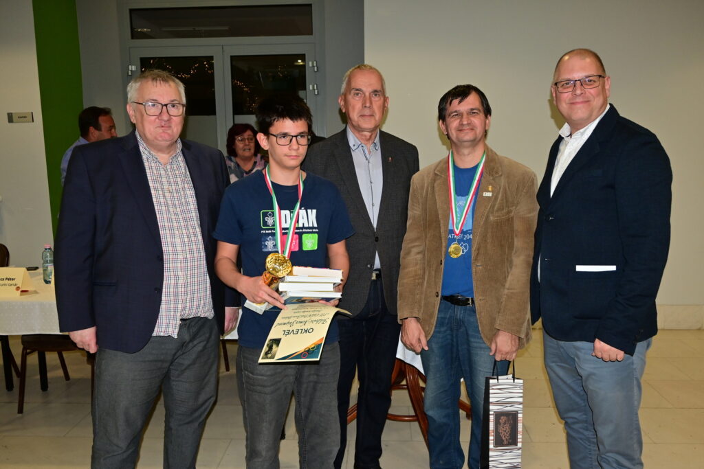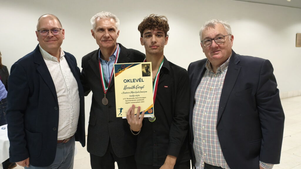 13 intézmény 36 diákja indult a 2025. november 21-én negyedik alkalommal megrendezett Buzánszky Jenő Országos Sporttörténeti Versenyen. A rendezvény aktualitását fokozta, hogy ebben az esztendőben volt városunk híres szülötte, a verseny névadója születésének 100. évfordulója. A hatalmas érdeklődés miatt a vetélkedő írásbeli fordulóját két helyszínen, a Dombóvári Illyés Gyula Gimnáziumban és a Tinódi Ház előcsarnokában kellett lebonyolítani. A Szicília Étteremben elköltött finom ebéd után délután következtek az igazi izgalmak, hiszen a legjobb 25 versenyző a fő helyszínen, a Tinódi Házban folytatta a nemes vetélkedést. Ebben a periódusban a tárgyi tudás mellett a kreativitásnak, a gyors gondolkodásnak, az adatok logikus elemzésének is nagy szerep jutott. Még fokozottabban igaz volt ez a tény a záró fordulókban. A legjobb 12 diák a gimnázium nyomógombos berendezése segítségével tesztelhette gyorsaságát, a verseny témaköreiben való elmélyülését.