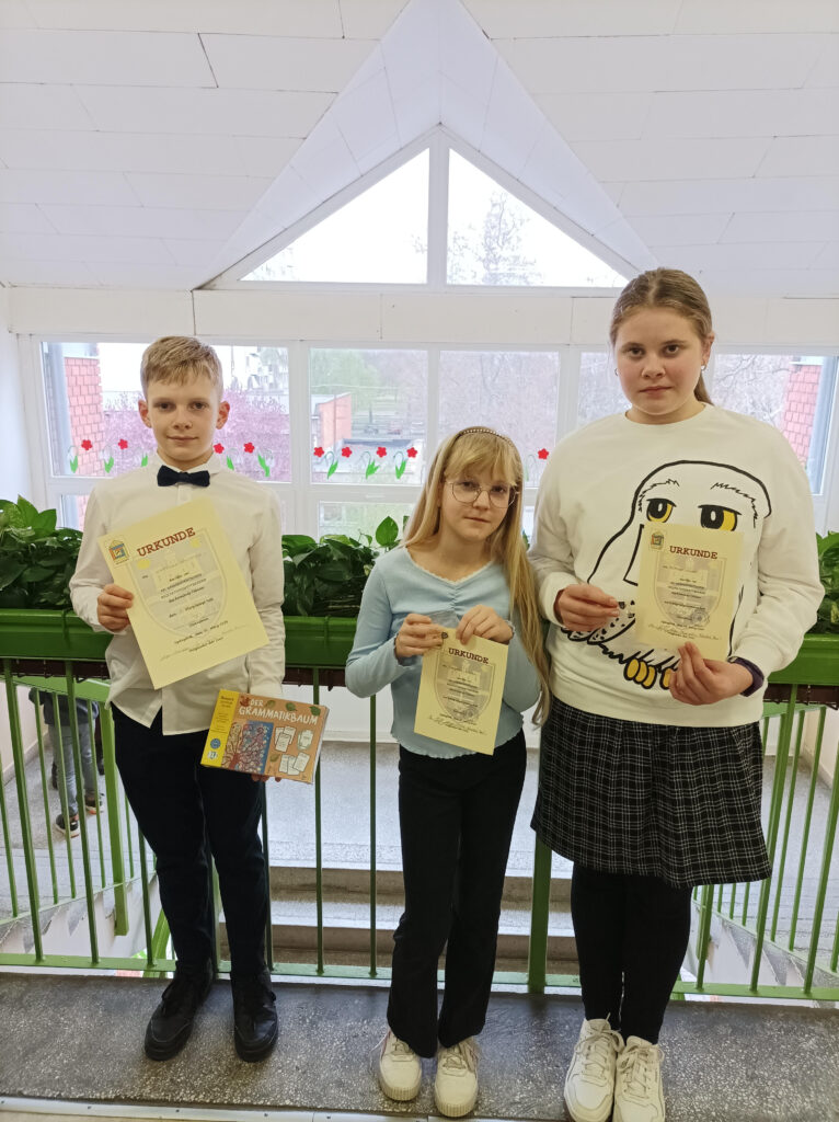 A Szekszárdon megrendezett XX. Magyarországi Német Vers- és Prózamondó Verseny Tolna Vármegyei Döntőjén három tanulónk képviselte iskolánkat. Hartung Benjamin (5.N) az 5-6. osztályosok kategóriájában 1. helyen végzett, így bejutott a májusi, budapesti országos döntőbe. Bagdán Emese (5.N) és Miltner Lilien (6.N) is nagyon szépen szerepeltek az erős mezőnyben, részvételükért oklevelet kaptak. Szeretettel gratulálunk tanulóinknak és Beninek további sok sikert kívánunk! A diákok felkészítői: Dicsőné Kohlmann Csilla és Haszeg-Antal Nóra tanárnők.