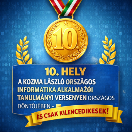 10. hely a Kozma László Országos Informatika Alkalmazói Tanulmányi Versenyen országos döntőjében – és csak kilencedikesek!